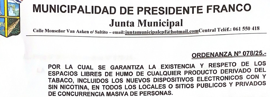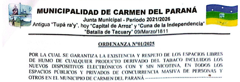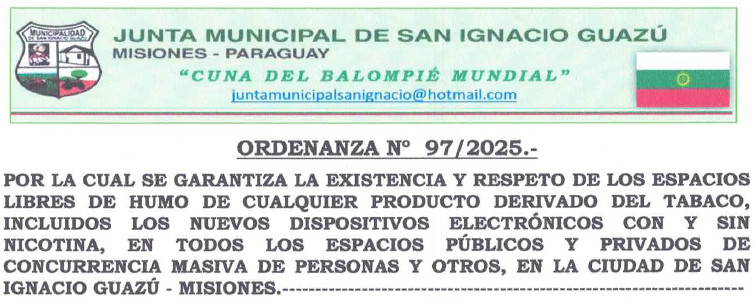 97 ORDENANZA 97-2025 LIBRE DE HUMO FUMAR CIGARRILLO SAN IGNACIO MISIONES